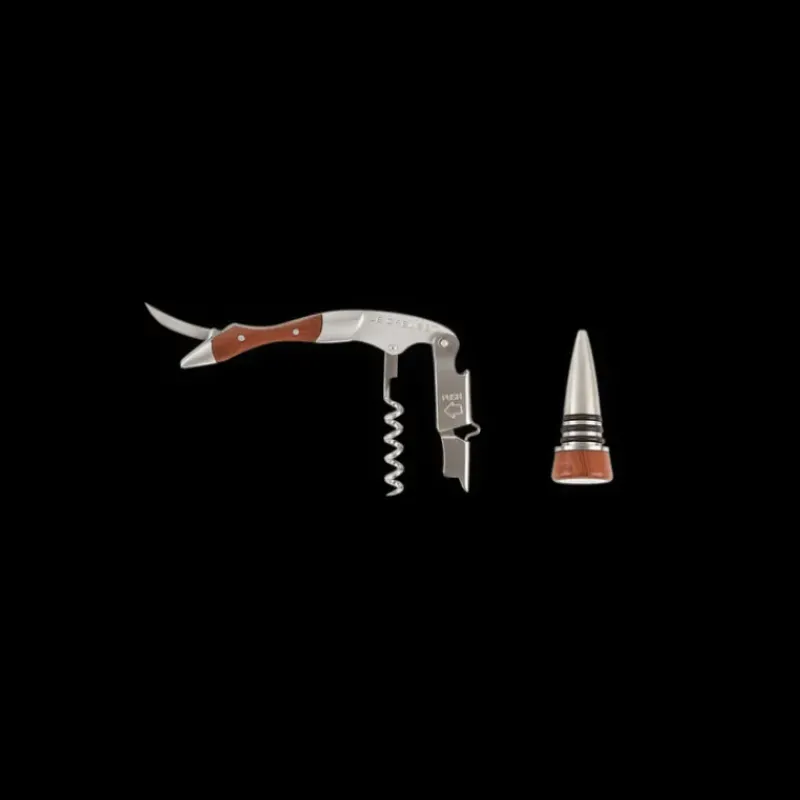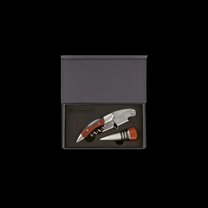 Coffret Sommelier Double Levier en Bois et Bouchon Le Creuset