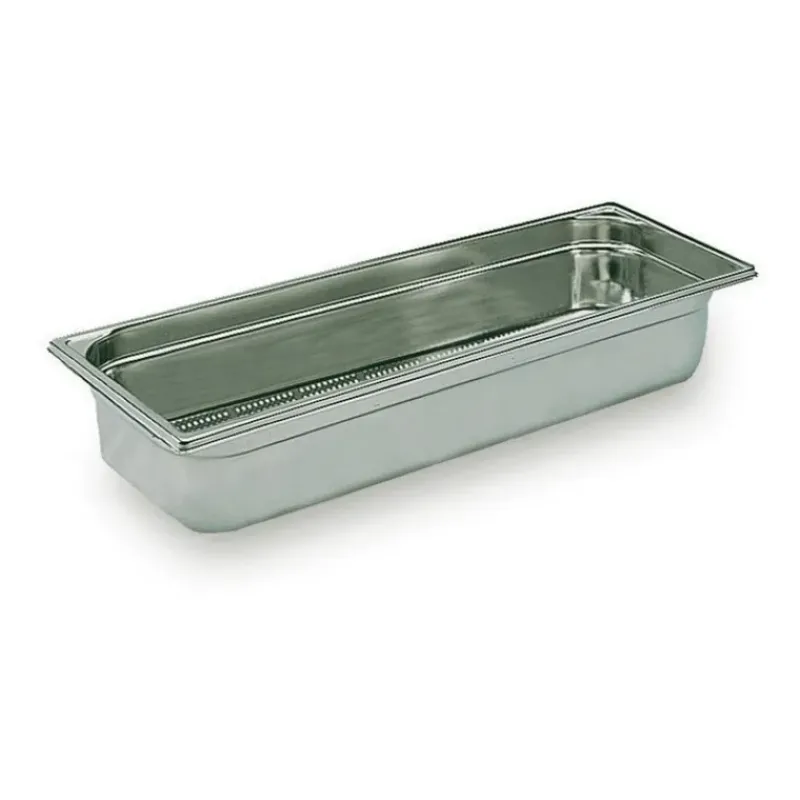 Le fond du bac inox dispose de perforations de 3 mm de diamètre. Il pourra servir à cuire ou à égoutter des féculents ou encore des légumes, ou encore à maintenir au chaud les aliments grâce à la vapeur. Le bac pro est un récipient modulaire : il pourra être utilisé avec le bac inox GN 1/1 ou encore les bacs inox GN 2/3 et GN 1/3.
