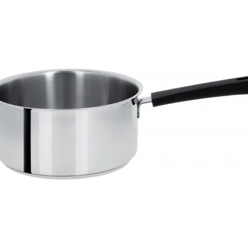 Cette casserole a une poignée fixe en plastique thermodurci noire qui résiste à la chaleur et reste froide en toute circonstance. Cette poignée soudée laisse l’intérieur de la casserole lisse ce qui permettra un nettoyage facile de la casserole.
