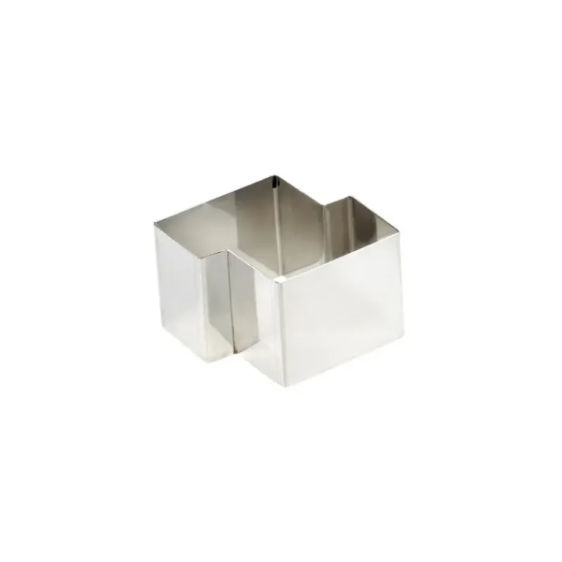 Cadre Carré Teckno individuel, appelé également Nonnette, pour réaliser des entrée, accompagnement ou dessert (petit gâteau, entremets, mousse…). La forme particulière des Nonnettes permet de monter plusieurs couches les unes sur les autres très facilement.