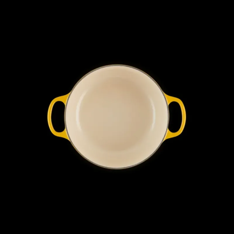 - Revêtement émaillé : simplicité de nettoyage de la Cocotte Ronde Jaune Nectar et plus grande résistance aux rayures.