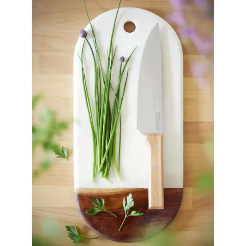 Le design de ce couteau de cuisine est travaillé pour être ergonomique : le manche offre une excellente préhension et la lame est stable. Instrument de découpe indispensable de toute cuisine, le couteau de chef Opinel est simple à aiguiser et à entretenir. Il vous accompagnera dans toutes vos recettes pour longtemps.