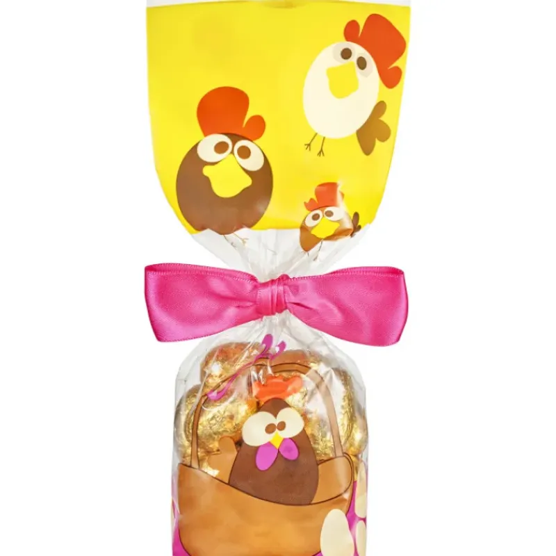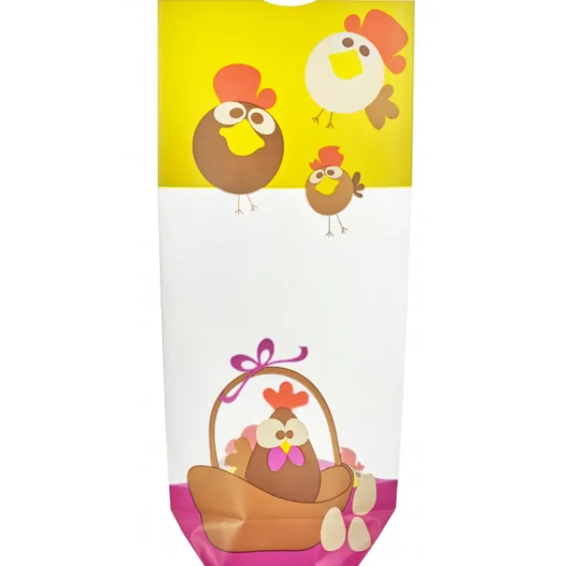 Fritures, mini-oeufs fourrés : présentez vos chocolats dans le Sachet Avec Fond Cocotte. A moitié transparent, la base et le sommet sont ornés de petites poules avec un panier et des oeufs. Le sachet avec fond Cocotte est exactement ce qu’il vous faut pour Pâques !