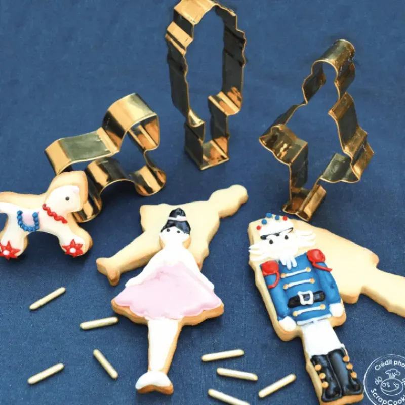 Créer des biscuits originaux sera un jeu d’enfant grâce au lot d’emporte-pièces Scrapcooking. Composé d’inox, les 3 découpoirs de ce lot prennent la forme d’un casse-noisette, d’une danseuse et d’un cheval. Ces designs sont inspirés du célèbre ballet Casse-noisette et vous permettront de confectionner des biscuits sur le thème de ce conte enchanteur.