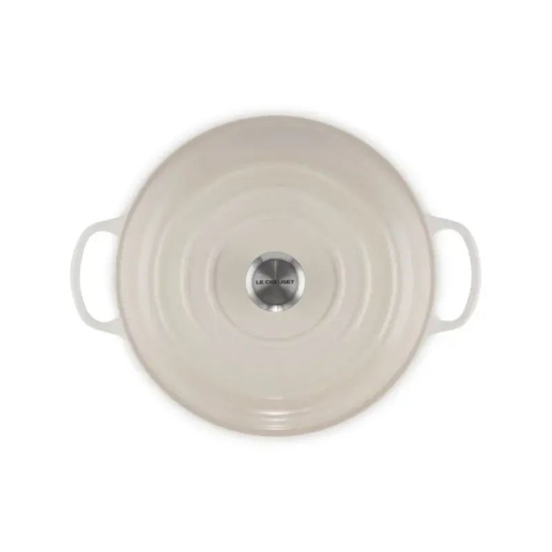 Le Faitout Meringue en Fonte avec Intérieur Sable 30 cm Le Creuset Signature incarne le parfait mariage entre savoir-faire traditionnel et design moderne.
