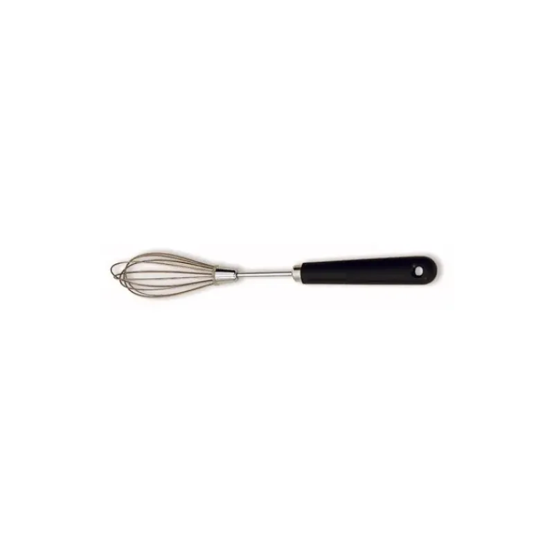 Fouet de petite taille, idéal pour travailler dans de petits récipients ou de petit volume de préparation. le manche permet une prise en main optimale du fouet.
