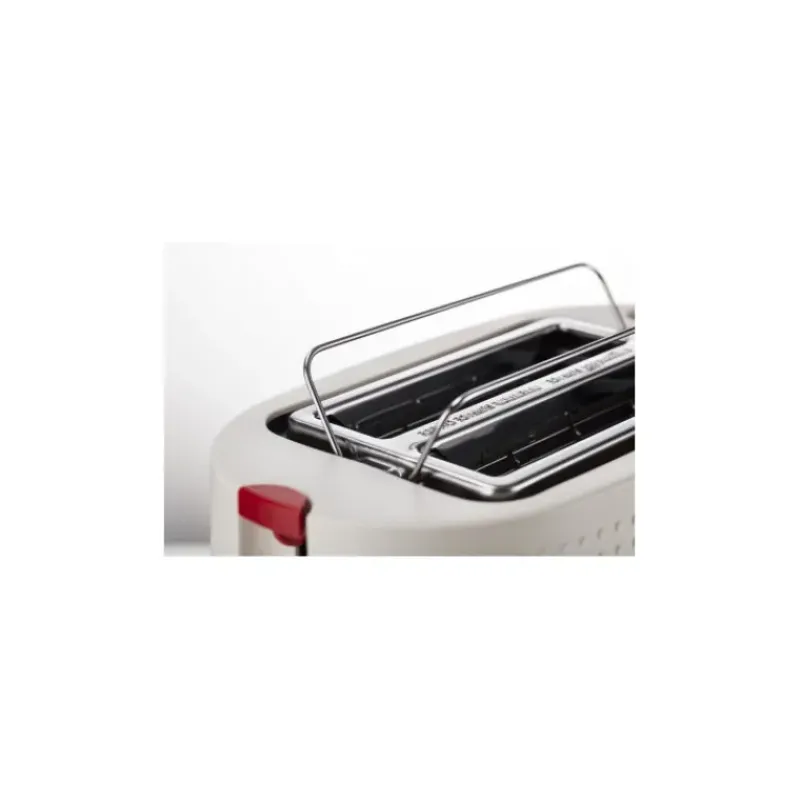 Le grille pain Bistro Bodum dispose d’un support métallique sur lequel vous pourrez poser des petits pains, des bagels ou encore des mini-viennoiseries. Ainsi, vous pourrez simplement les faire réchauffer (mmmh, le petit pain au chocolat et son coeur fondant !). Le grille pain Bodum dispose d’un bouton variateur allant de 1 à 5, d’un bouton stop et d’un bouton de décongélation.