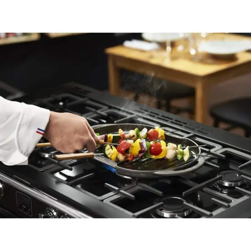 D’origine française, la poêle-gril passe au lave-vaisselle et est pourvue d’un crochet de suspension pour être rangée plus facilement. Pour un service propre et sécurisé, la poêle-gril de 28 x 24 cm est équipée d’une poignée d’assistance et de becs verseurs.