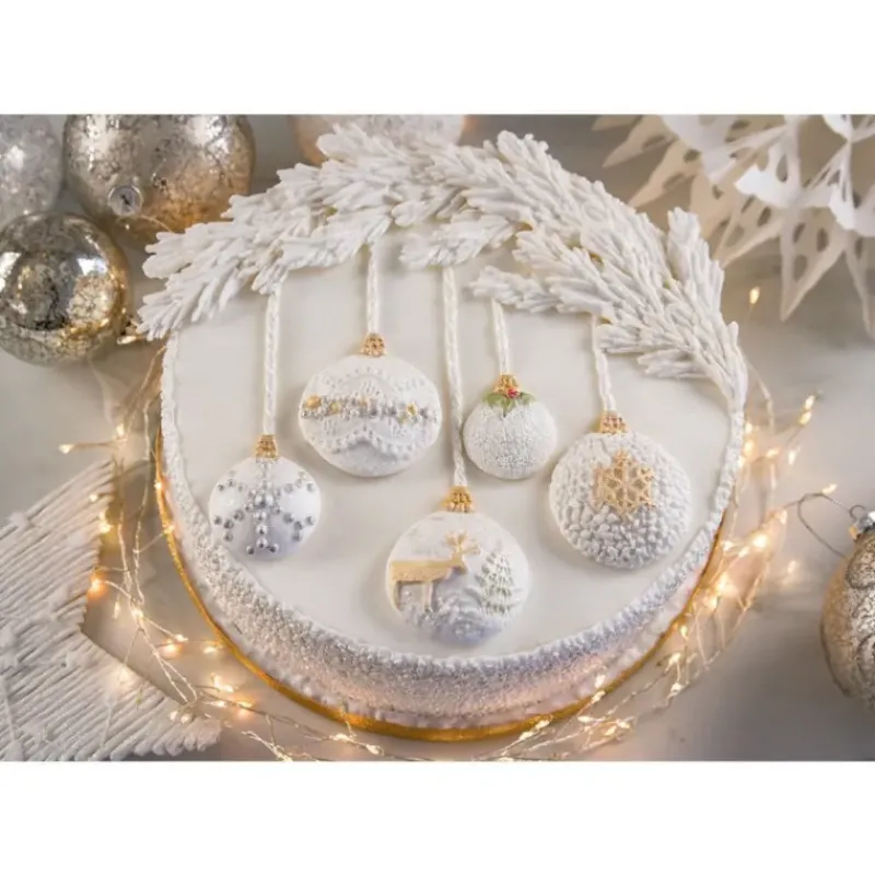 Faites de votre cuisine un véritable espace de création culinaire avec ce moule en silicone de qualité supérieure qui vous permet de créer des gâteaux uniques au design élégant des célèbres boules de Noël ! Ainsi, nous vous invitons à confectionner des biscuits, des chocolats ou à modeler des décorations en isomalt, pâtes à sucre ou amande en forme de boules de Noël aux couleurs et textures différentes pour plonger dans l’univers magique des fêtes de fin d’année. Ces boules reflétant l’hiver sont dotées de motifs très détaillés et réalistes qui sublimeront vos tables de fêtes.