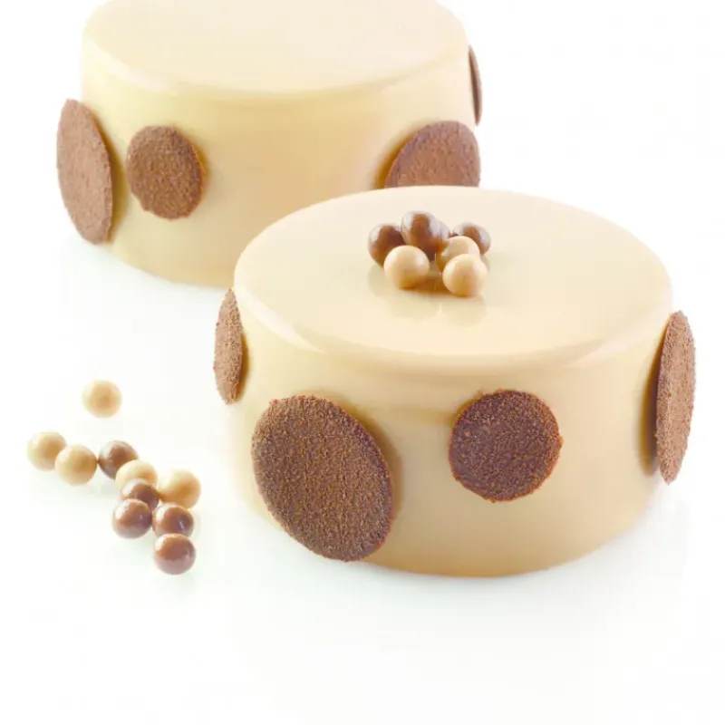 Afin de mettre en valeur vos créations sucrées et salées et d’affiner leurs jolies bordures, nappez-les d’un glaçage miroir ! Décorez vos cylindres de pastilles alimentaires ou saupoudrez un peu de paillettes alimentaires pour un effet des plus magiques.