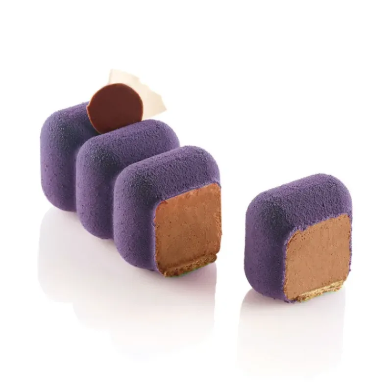 Découvrez la plaque Silikomart qui vous fera gagner du temps lors de la réalisation de vos bûches. Composée de 4 moules silicone Galaxy, cette plaque vous permettra de réaliser en une seule fois 4 bûches glacées ou pâtissières. Les moules silicone Silikomart vous assurent une qualité constante que vous utilisiez votre plaque au four ou en cellule froide.
