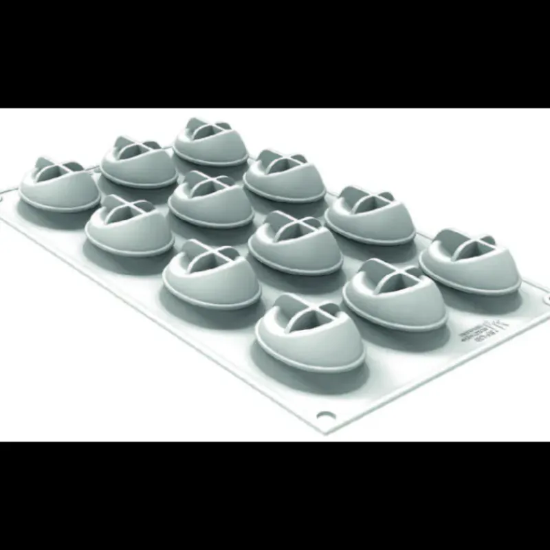 Avec ses 12 empreintes identiques au design ovale et futuriste, ce moule en silicone vous offre la possibilité de réaliser des douceurs uniques qui surprendront et émerveilleront à coup sûr. Fabriqué en silicone lui garantissant un démoulage facile et des créations impeccables, ce moule Silikomart est de véritable qualité professionnelle.