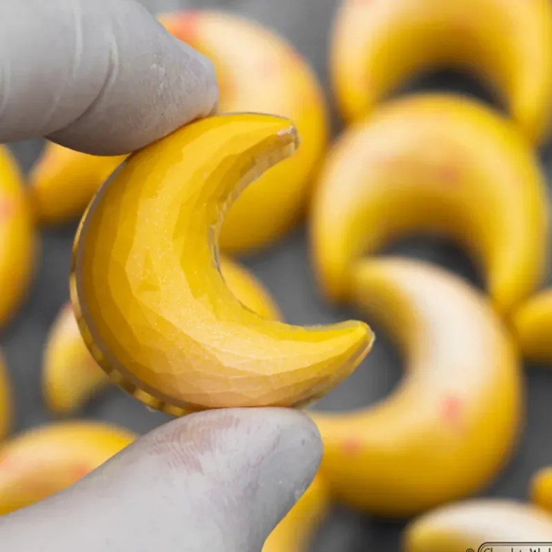 Nul besoin d’un télescope pour observer les corps céleste comme la Lune, un peu de chocolat de couverture suffira. Chocolate World vous fait voyager dans les étoiles avec son moule demie-lune à facettes. Tout comme son modèle, la demie-lune reflète la lumière grâce à ses nombreuses facettes. Cette réfraction à le don de captiver quiconque l’observe, en particulier les gourmands.