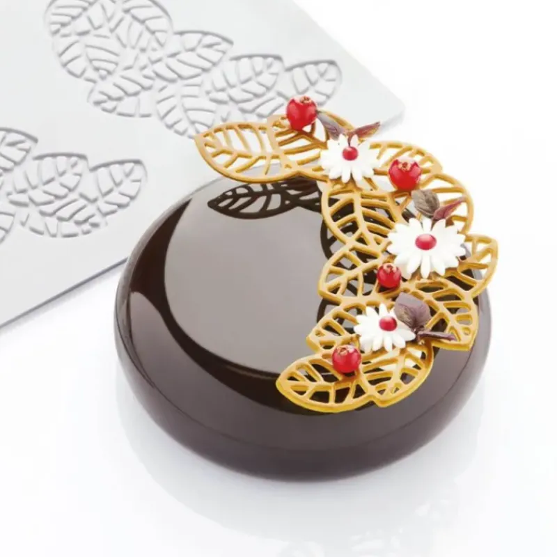 Moule Silicone Décor Feuilles 14,1 x 10 x H 0,2 cm (x3) Pavoni