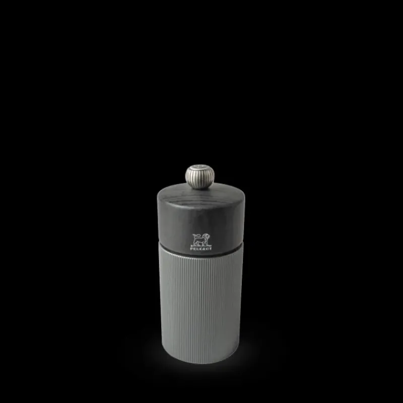 Avec ses stries irisées graphiques et sa combinaison de matières, entre son corps en aluminium et son chapeau en bois de hêtre issu de forêt françaises durables, le moulin à sel Line sera parfait pour habiller vos tables. La teinte carbone de la salière pourra se marier avec celle du moulin à poivre 12 cm aluminium de la même gamme. Pour une association monochrome, le moulin à sel Peugeot carbone existe également en poivrier.