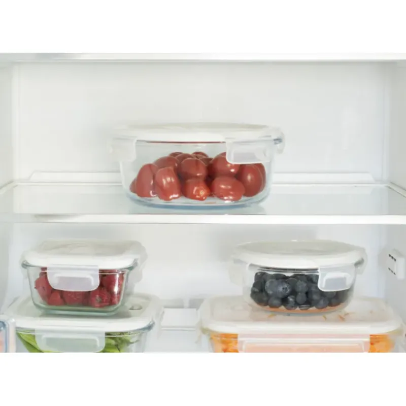 Le récipient de la boîte hermétique est en verre borosilicate sans Bisphénol A (BPA), offrant une grande résistance aux chocs thermiques. Ainsi, la boîte en verre passe au réfrigérateur, au congélateur, au four (sans couvercle) et au micro-ondes avec la valve vapeur ouverte, située sur le couvercle.
