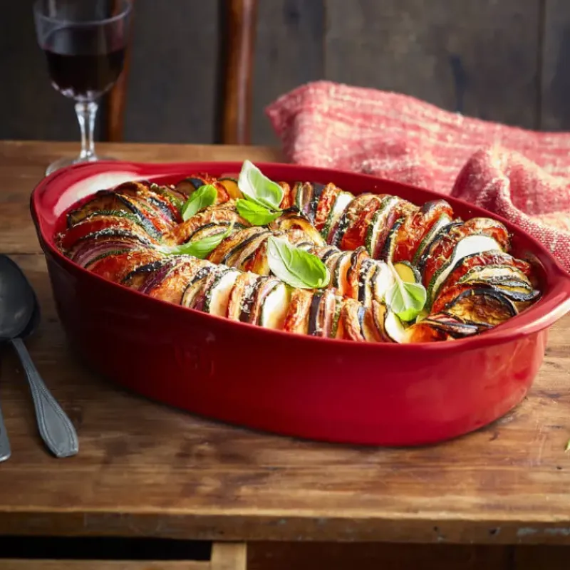 Nul doute que l’inspiration pour vos prochains repas se fera facile à la vue de ce plat à four Emile Henry, à l’émail carmin.