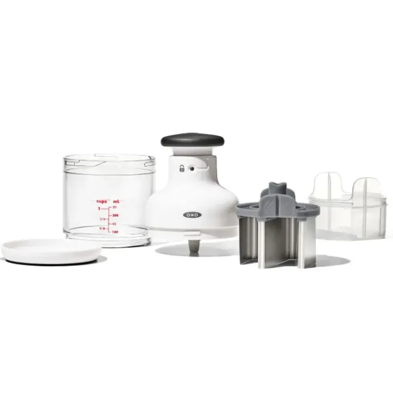 Le Hachoir Oxo est très pratique pour hacher les oignons, les échalotes, les herbes, les noix etc. Grâce à son récipient gradué, il vous sera facile de mesurer les quantités d’aliments.