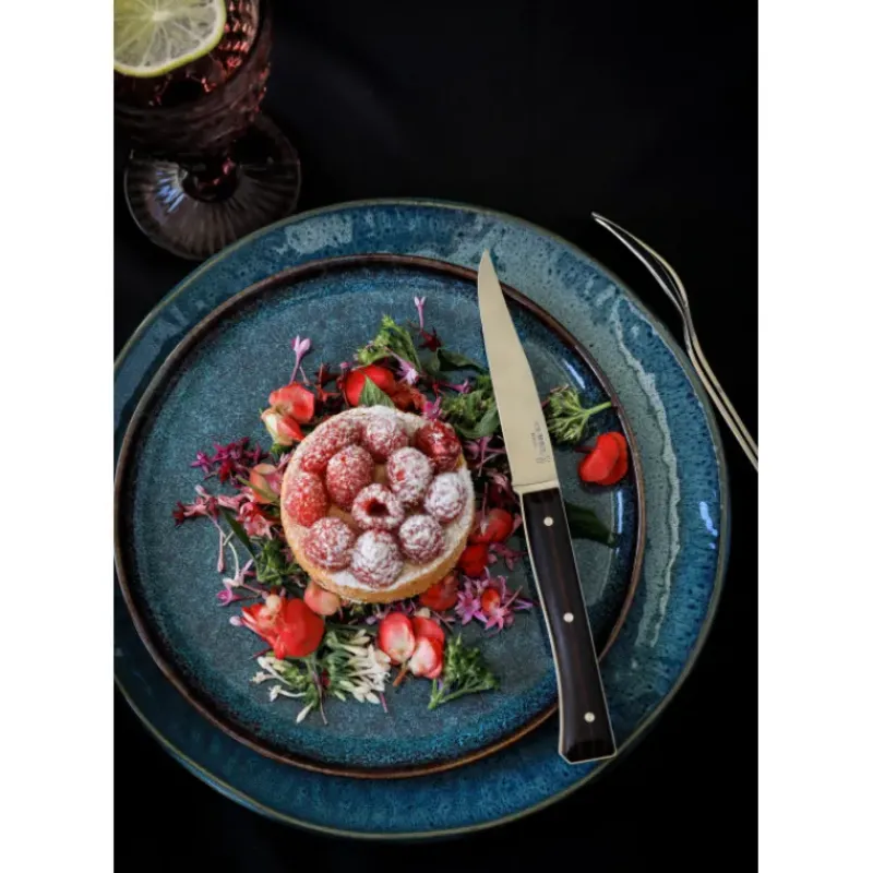 Le manche des couteaux de table est quant à lui composé d’une essence de frêne sombre stabilisée. Proposant une prise en main agréable, ces couteaux de table Facette se distingue par leur ergonomie.