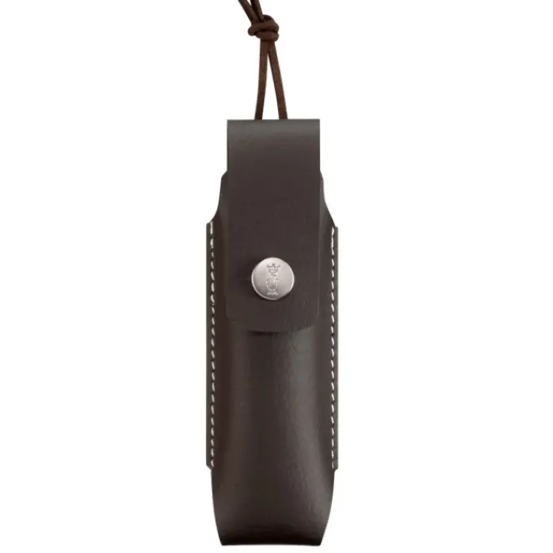 Tout le savoir-faire et l’artisanat savoyard vous accompagneront dans l’étui en cuir que vous pourrez porter à votre ceinture. Le couteau de poche N°8 sera maintenu à l’abri dans cet étui refermé à l’aide d’un bouton pression.