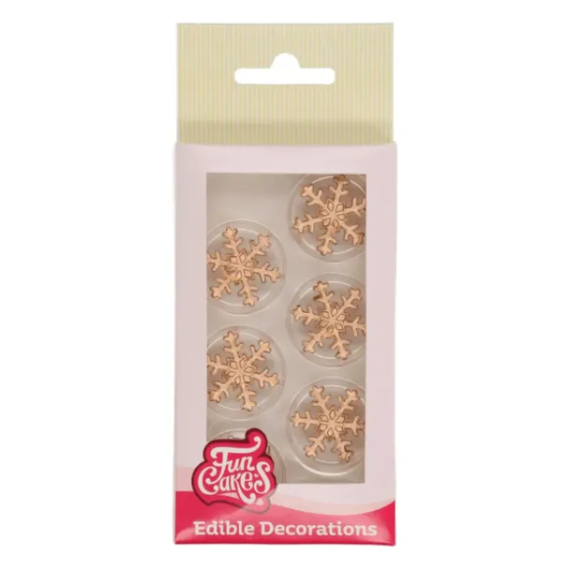 Décoration Gâteau Flocon de Neige Doré en Pâte à Sucre Funcakes (x12)