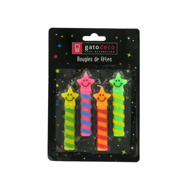 Bougies Smileys Etoiles (x4) Gatodéco