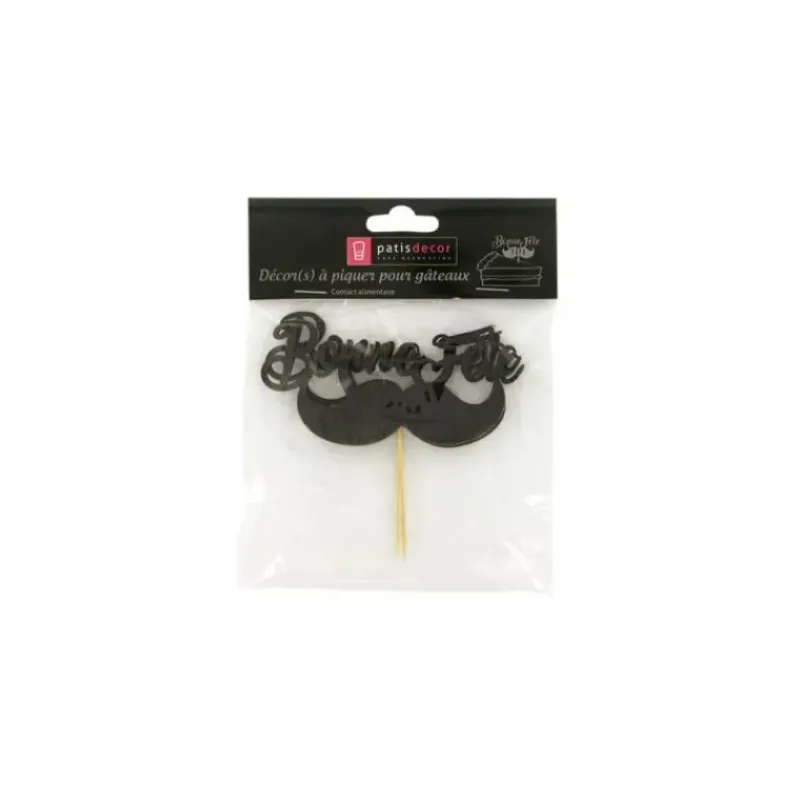 Décor Bonne Fête Moustache sur Pic (x2) Patisdécor