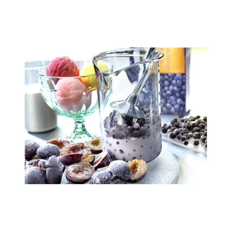 Soupe, smoothie, glace, mousses : réalisez des préparations délicieuses et variées grâce au Mixeur Plongeant Bamix. Ce dernier est fourni avec de nombreux accessoires afin que vous puissiez laisser libre cours à votre imagination. Le mixeur plongeant M160 Deluxe Bamix s’accompagne d’un couteau étoile, d’un disque mélangeur, d’un disque fouet, d’un gobelet et d’un moulin. Le support mural ou sur pied vous permettra de conserver le mixeur plongeant Bamix à portée de main et de gagner en espace de rangement.