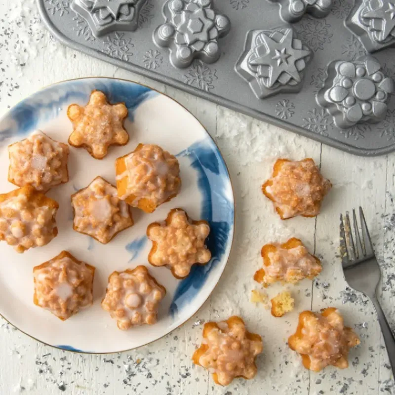 Faites tomber la neige à gros flocons sur votre table de fête en confectionnant des petits gâteaux en forme de flocons de neige. Nordic Ware vous propose un moule à gâteaux de premier choix qui vous accompagnera des années durant.