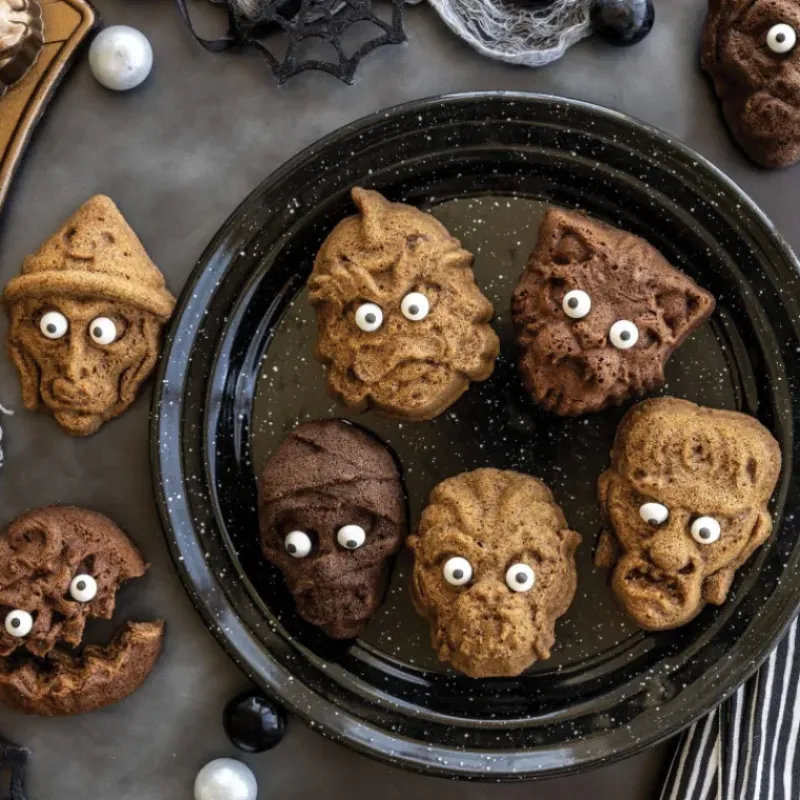 Le moule à gâteaux monstres Nordic Ware prend la forme de huit monstres uniques sur fond de toile d’araignée. Chacun de ces faciès déformés de ce moule en aluminium se fondra dans vos décors de squelettes, chauve-souris, et autres créatures de la nuit. Il vous faudra simplement faire appel à votre esprit gourmand pour remplir les empreintes du moule à gâteaux. Préparation sucrée ou salée, de toutes les couleurs qui vous feront plaisir, elles seront magnifiées par le moule Nordic Ware.