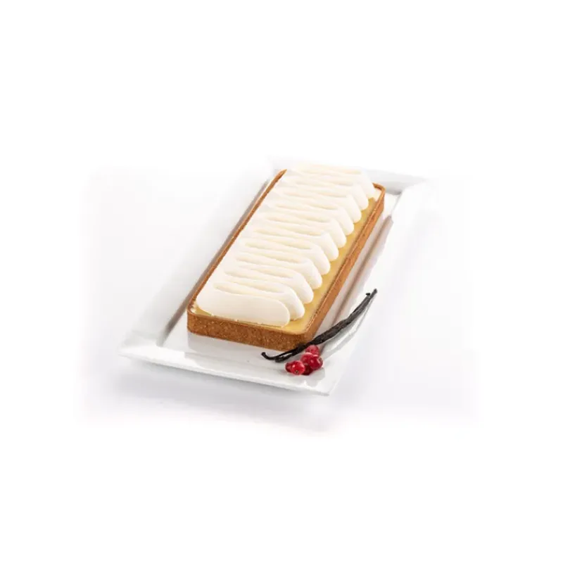 Le moule en silicone Silikomart 3D Design pouvant aussi bien aller au four, qu’au congélateur : il vous sera possible de réaliser toutes sortes de pâtisseries. Kit Nouvelle Vague pour une tarte rectangulaire de 26,5 x 10,5 cm.