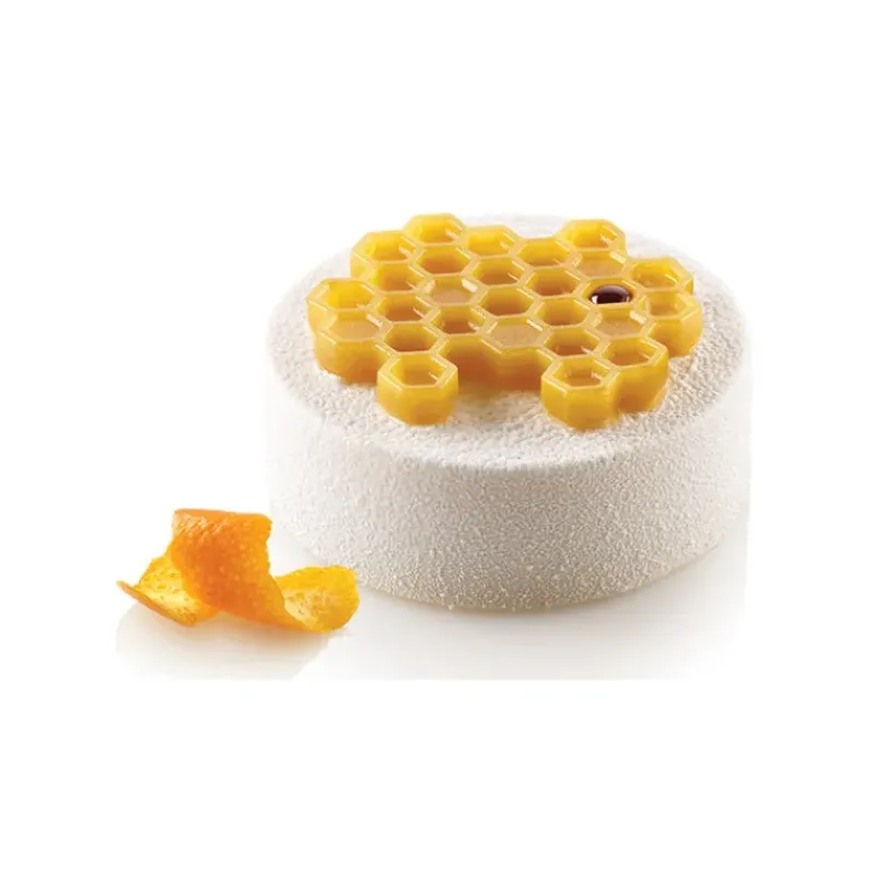 Utilisez ce Moule Pâtisserie Silicone Miel pour décorer vos entremets. Facile à utiliser et de qualité professionnelle, ce Moule Silicone Abeille prend la forme des alvéoles d’un nid d’abeilles. Original et souple, ce Moule Silicone Professionnel permet la création de jolis décors pour vos entremets.