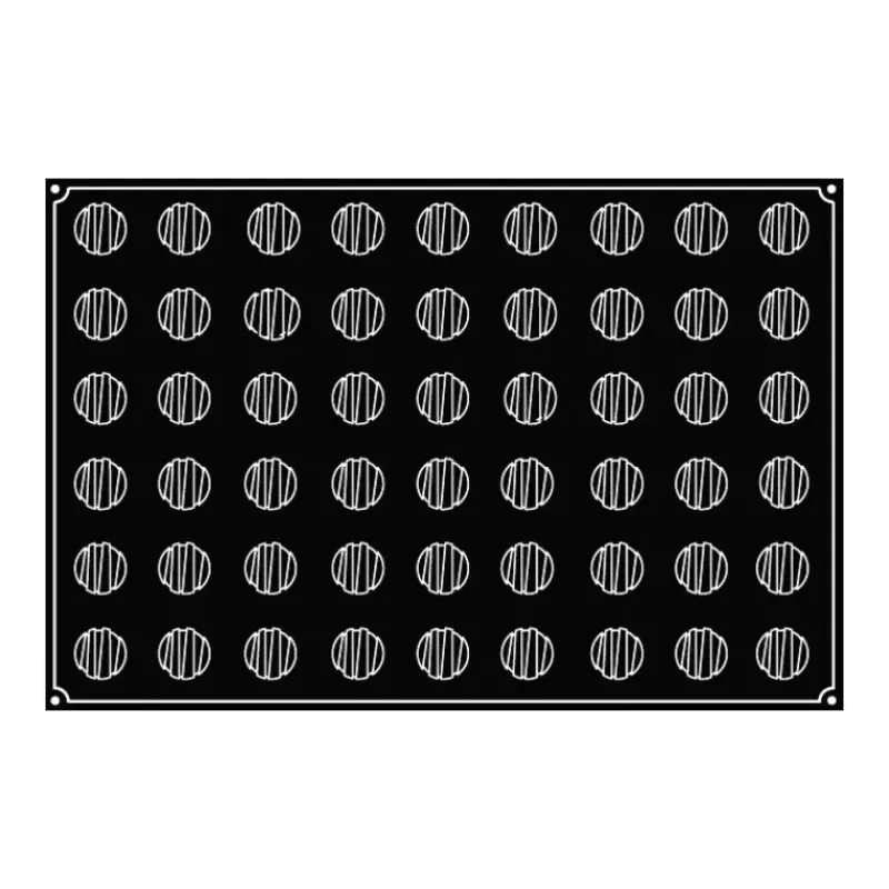 Ce moule en silicone souple résiste aux basses températures (- 40°C) mais aussi aux fortes températures (+ 300°C) vous laissant ainsi un large choix quant à l’utilisation que vous pourrez en faire. Notez que ce moule vous assurera un démoulage net et sans bavure, puisque le moule est anti-adhérent, vos 54 Mini-Ronds Rayés seront donc parfaitement identiques.