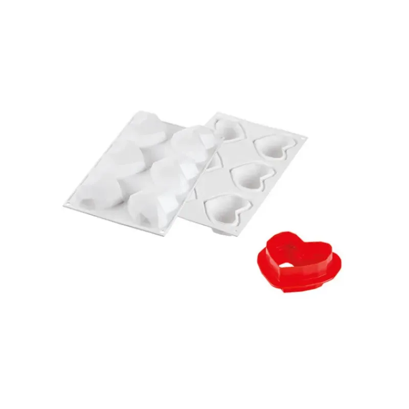 Moule Silicone 6 Coeurs Origami 82,6 x 74 x h35 mm 110ml SilikoMart Professional