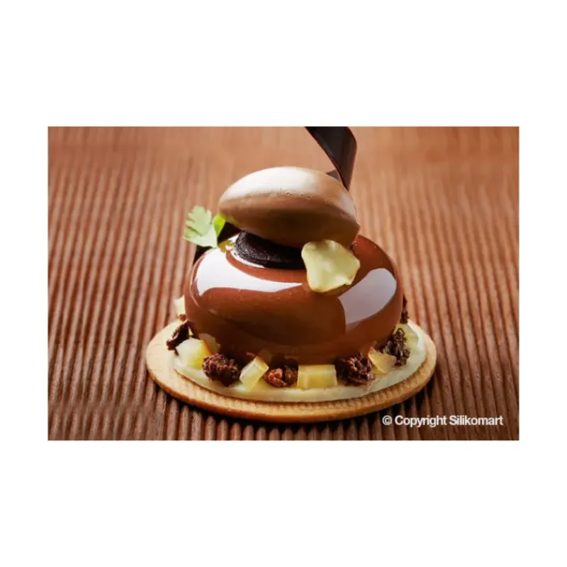 Offrez à vos convives un moment de gourmandise plein d’élégance en confectionnant des desserts à l’assiette grâce au Moule Silicone 8 Ronds Bombés. Ce Moule Silikomart Professional permet de réaliser 8 entremets d’un volume de 85 ml chacun. Chaque empreinte de ce Moule Ronds Bombés mesure 6,5 cm de diamètre, pour une hauteur de 3 cm.