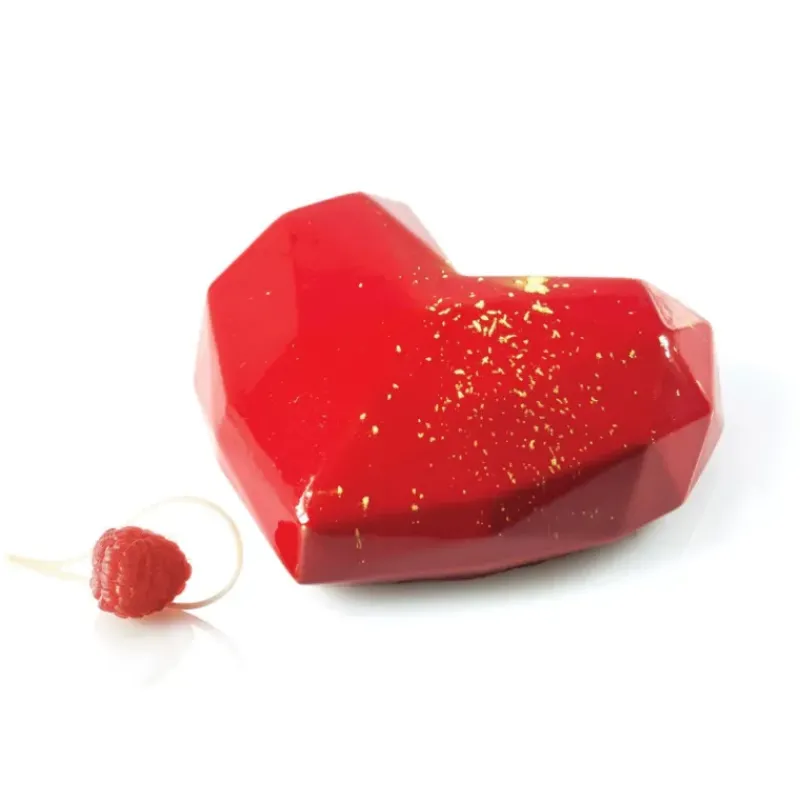 D’une qualité professionnelle ce moule en silicone coeur origami vous offre des détails parfaits au démoulage: mettez en valeur chaque facette de l’amour en recouvrant votre pâtisserie de spray velours rouge ou de nappage miroir rouge.