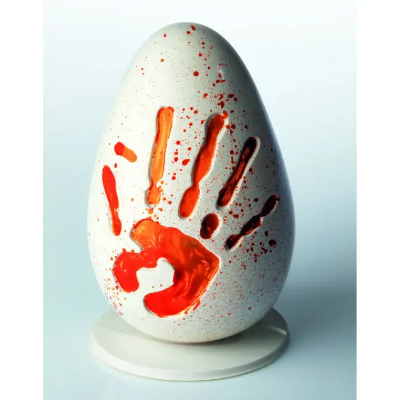 Procédez enfin au démoulage et assemblez les 3 parties de l’Oeuf de Pâques Main pour pouvoir l’entreposer dans votre vitrine. Avant de souder les 2 moitiés d’oeufs, pensez à y glisser quelques confiseries. Munissez-vous d’une bombe de froid alimentaire et de chocolat tempéré pour assembler votre Moulage en Chocolat Pavoni.