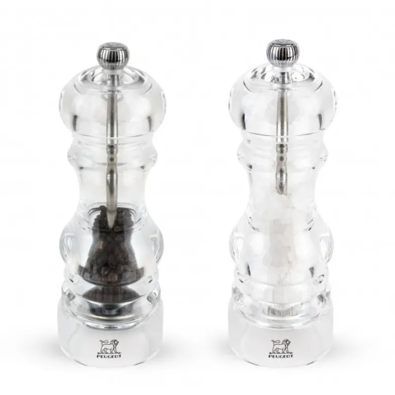 Présentez ce magnifique Duo Moulin à Poivre et à Sel Nancy 18 cm Peugeot sur votre table. Élégant, il possède une ligne qui fait immédiatement penser à la collection Paris de Peugeot, mais cette fois toute en transparence.