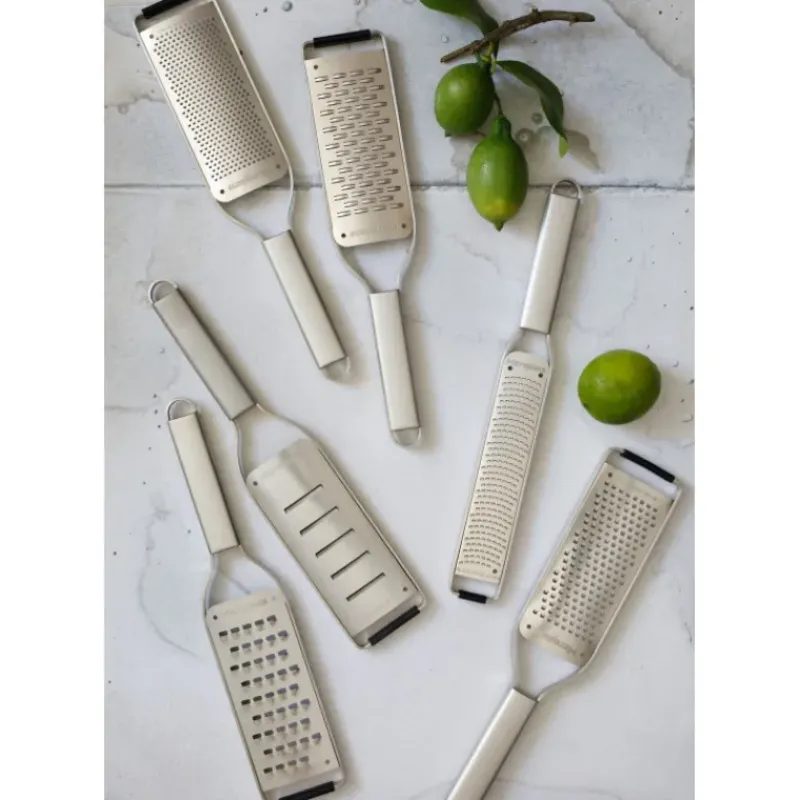 Cette râpe zesteur, à l’instar des sept râpes de la collection Microplane Professional, est entièrement conçue en acier inoxydable de haute qualité, garantissant une grande solidité et durabilité. Elle vous accompagnera dans toutes vos expériences culinaires, que ce soit pour râper des ingrédients durs comme le fromage ou plus tendres tels que la peau des agrumes. De plus, cette râpe à zeste s’adapte à de nombreux aliments grâce à sa longue lame étroite, qui permet de zester des ingrédients larges comme petits.